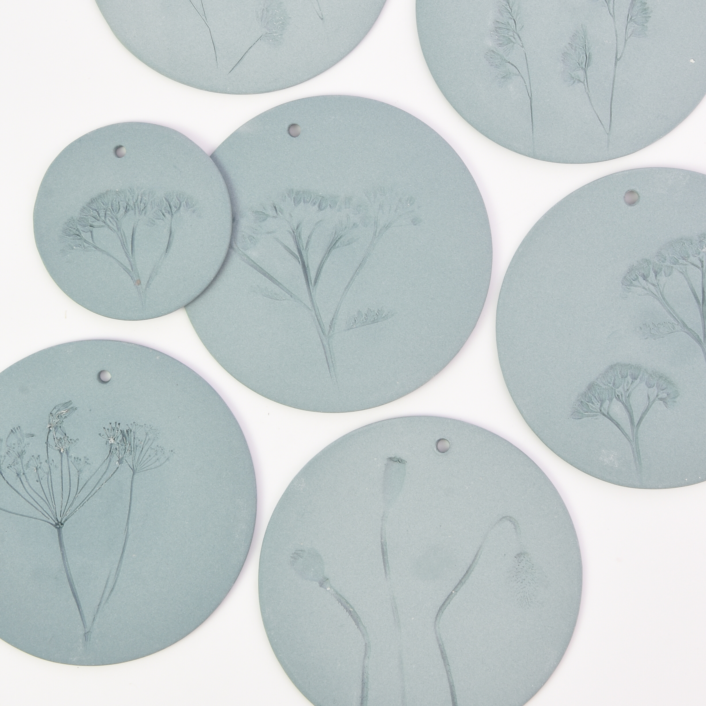 Since Harm and Elke make these plant wall hangers, walking outside is quite an experience. Suddenly they look at the nature surrounding them from a different perspective, eyeing the plants, flowers and weeds they encounter along the way. What’s an ordinary twig at first sight may just give a very surprising and esthetic effect, pressed in porcelain. Sometimes, if you look closely, you can tell from the print in which season a plate was made. Some plants or flowers can only be found for a few months a year.