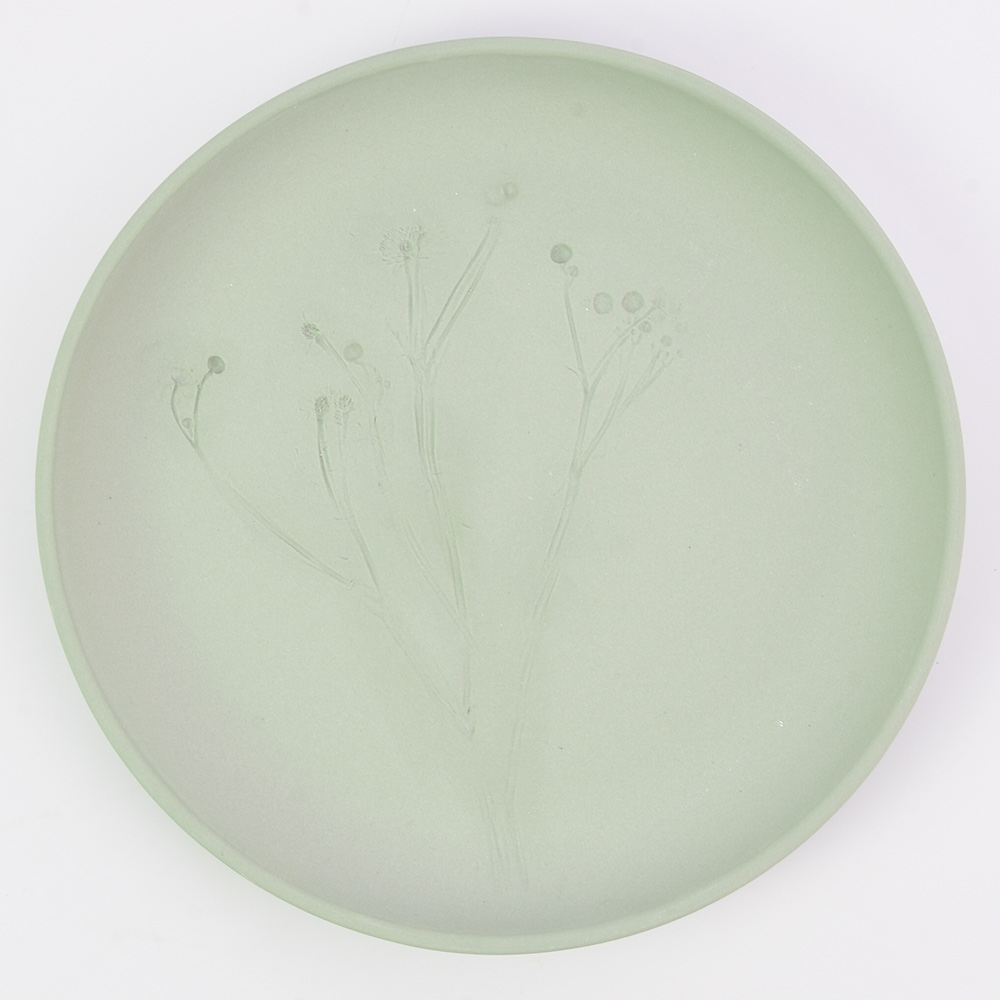 Since Harm and Elke make these plant plates, walking outside is quite an experience. Suddenly they look at the nature surrounding them from a different perspective, eyeing the plants, flowers and weeds they encounter along the way. What’s an ordinary twig at first sight may just give a very surprising and esthetic effect, pressed in a porcelain plate. Sometimes, if you look closely, you can tell from the print in which season a plate was made. Some plants or flowers can only be found for a few months a year. The plates – not covered with glaze – are often hung on the wall and are dishwasher safe.